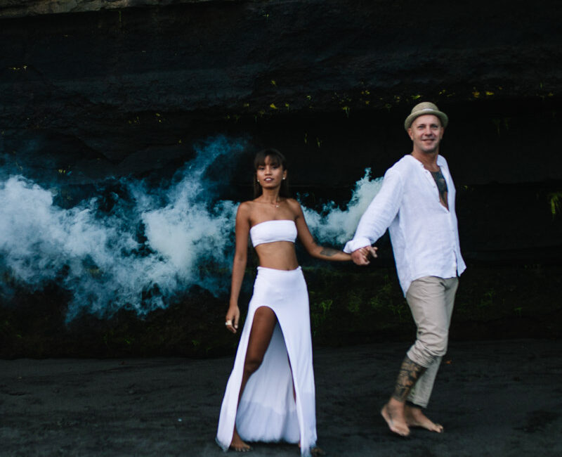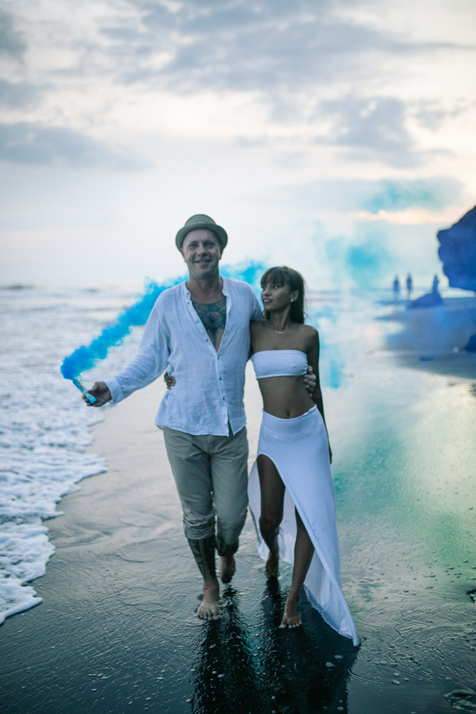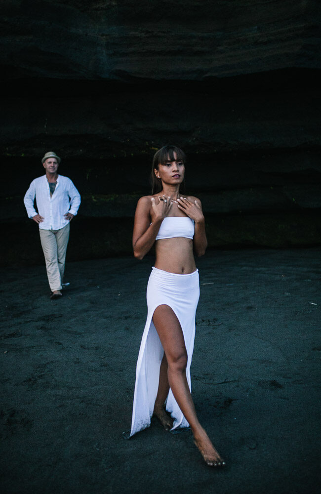 Bali es un destino reconocido mundialmente para la fotografía de bodas y Vera, la novia, de origen indonesio, y Mike, inglés, eligieron Bali como el escenario perfecto para su sesión de posboda, . Vera y Mike fueron uno con la arena, el agua, la brisa y las rocas de Bali, entrando en conexión entre ellos y a su vez con el paisaje. A pesar de que el atardecer no fue tan espectacular, la atmósfera invitaba a fluir con la energia del lugar.